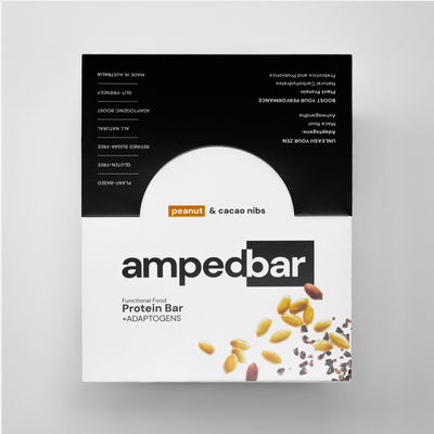 Eating healthy and maintaining balanced nutrition shouldn’t be a hassle. That's why we've developed ampedbar - a functional protein bar that seamlessly blends the benefits of a nourishing plant protein snack with the performance-boosting and wellness-enhancing powers of adaptogens. Ready to be amped?